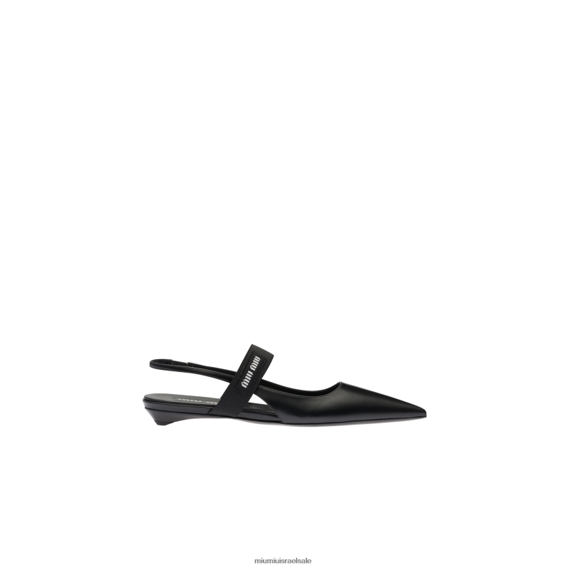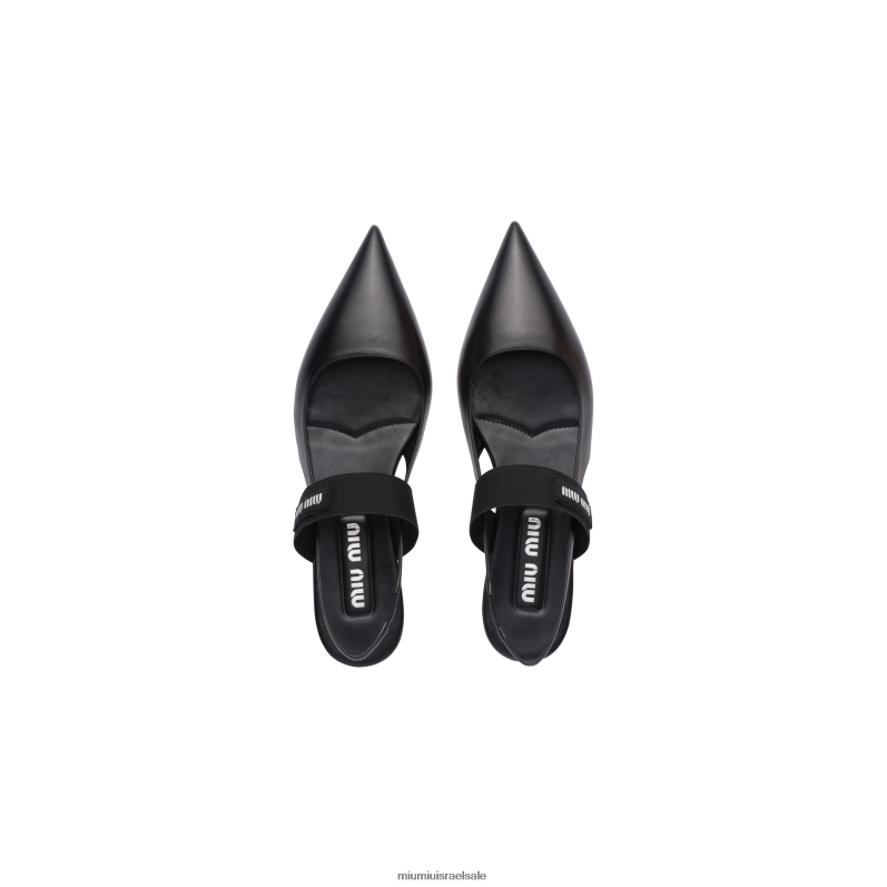 סגנון עכשווי וקז'ואלי מובהק מאפיין את דירות הבלרינה הזו מעור. העיצוב לוקח את הנוחות של הבלרינה הקווים השטוחים והמעודנים של המשאבה כדי לשלב פרקטיות ואלגנטיות. האלסטית המנוגדת עם הלוגו של miu miu משלימה את האסתטיקה עם מגע איקוני.