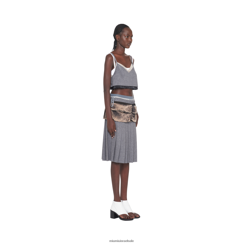 חדשים בקולקציה וכבר אייקוניים. במהלך תצוגת אביב קיץ 2023, חגורת ג'ינס משיש זו ייצגה תפיסה של אופנה כחלק בלתי נפרד מהחיים האמיתיים שבהם שימושיות, תועלת ושירות משפיעים על הביטוי הפיזי. כיסי נרתיק הרוכסן המרווחים, בהשראת עולם השירות, הם ביטוי של פרקטיות וגבול בין קישוט לתפקוד. הלוגו הרקום מקשט את החזון החדש של הסגנון. הטיפול המיוחד בשיש מעניק לבד אפקט אומברי קלות בעוד הפרטים המעודנים מגדירים אסתטיקה מקורית וייחודית.