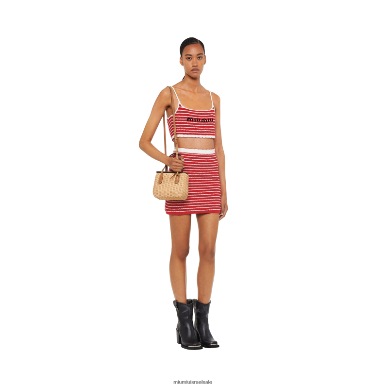 מוכן ללבישה אדום לבן Miu Miu טופ כותנה בוקל FNPPL604