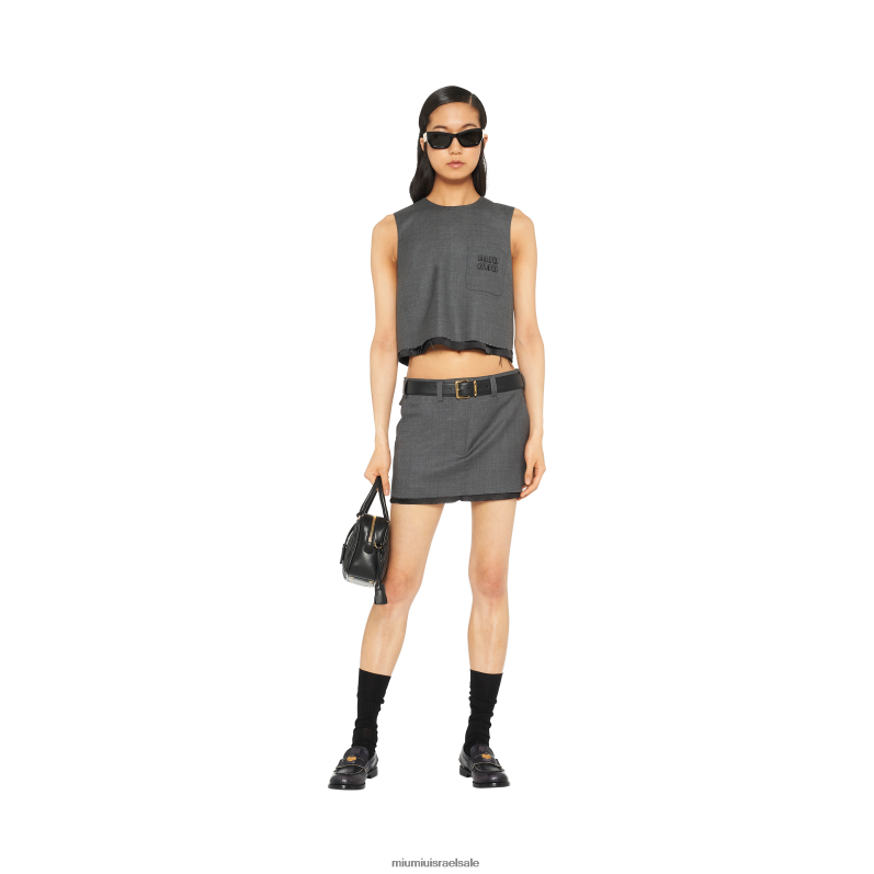 miu miu משחקת עם קודים מסורתיים, ומפרשת את מושג הנשיות לפי נקודות מבט חסרות תקדים. החלק העליון הזה משלב קודים סגנוניים שונים לרעיון חדש של יוקרה.