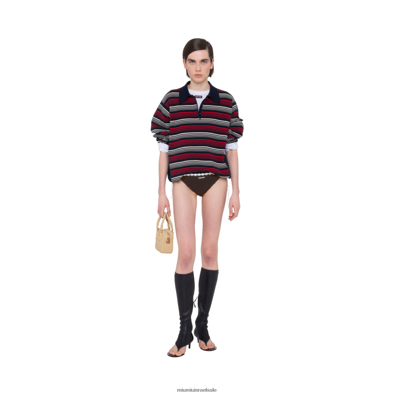 הפניות לבגדי גברים מתפרשות מחדש בהתאם לנשיות חסרת הכבוד של miu miu בחולצת פולו סריג כותנה זו. פסים צבעוניים מוסיפים פרט תוסס לבגד בעוד הלוגו של אינטארסיה משלים את המראה עם תו איקוני וייחודי.