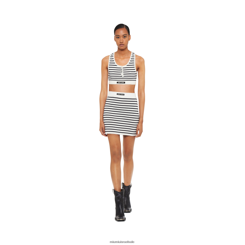 הסגנון התוסס של miu miu מפרש מחדש פסים והשראות ספורטיביות עם טוויסט גלאם בטופ הכותנה החדש הזה. הקווים החתוכים מלווים עיצוב עכשווי מובהק בעוד הלוגו המנוגד של האינטרסיה על המכפלת משלים את האסתטיקה עם הערה איקונית.