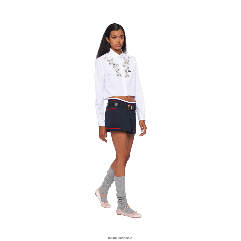 רקמה יקרה מקשטת את חולצת הפופלין הזו בהתאמה לבגדי גברים. מוטיב פרחוני זוהר מדמיין מחדש את הבגד שמזכיר את עולם התכשיטים, ויוצר סגנון פשוט אך יוקרתי.