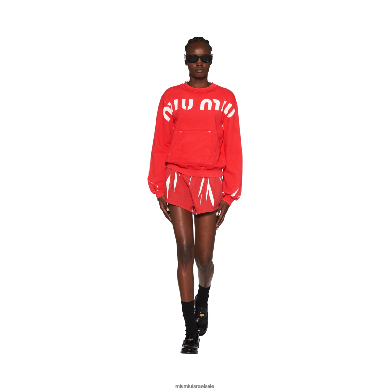 ראשי| מוכן ללבישה| חולצות טריקו וסווטשירט| מוכן ללבישה אָדוֹם Miu Miu סווטשירט כותנה מודפס FNPPL681