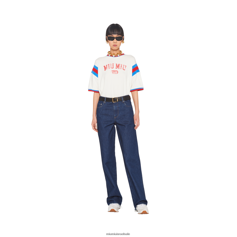 הצטרפו למועדון miu miu. חוגגים נשיות מודרנית חסרת כבוד, העיצוב של חולצת הטריקו הזו משחק עם מוטיבים ספורטיביים ונותן להם משמעות חדשה.