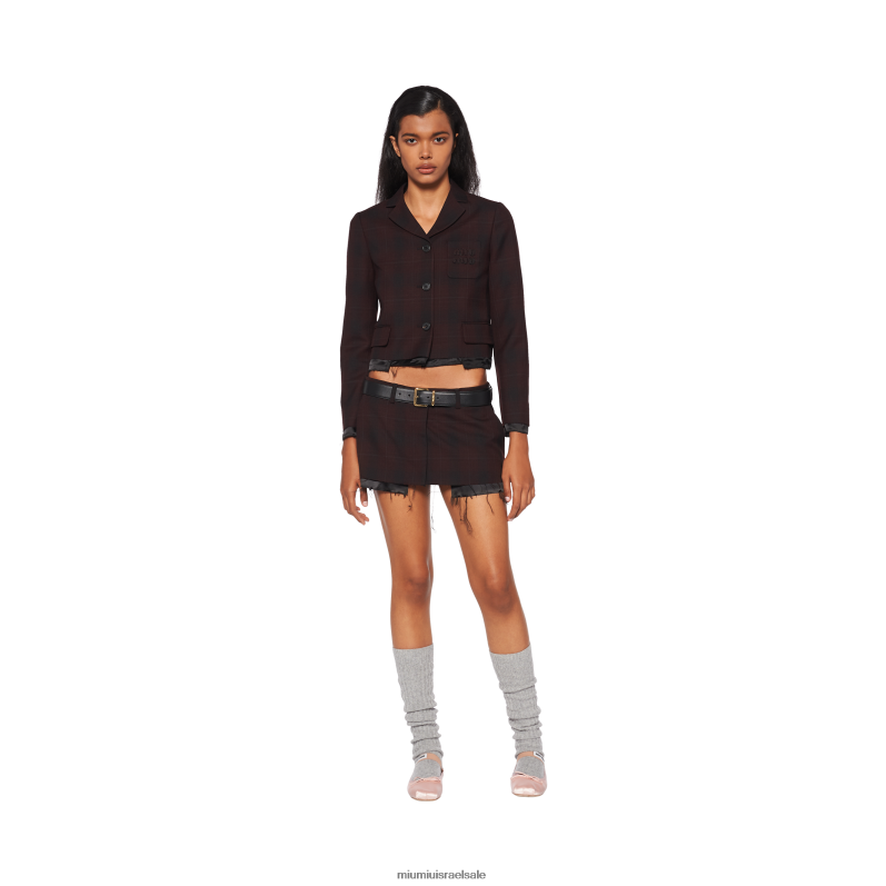מוכן ללבישה בורדו Miu Miu חצאית מיני משובצת FNPPL897