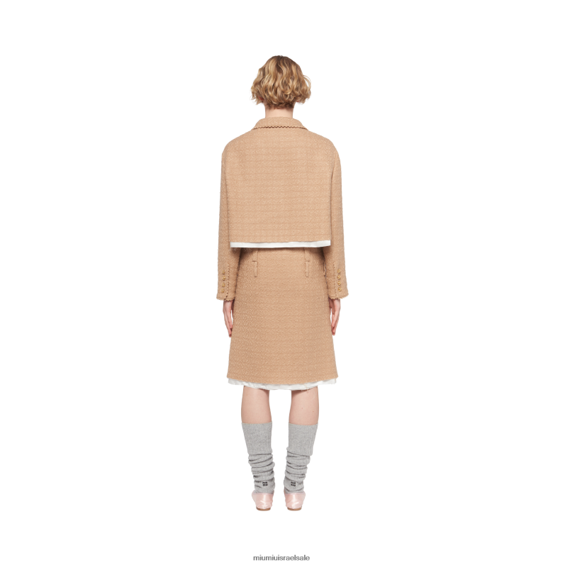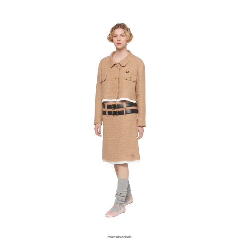 חצאית הטוויד הזו כוללת שילוב של קודים סגנוניים, הממזגים אלגנטיות מרדנית וחייטות מודרנית. תהליך הבנייה נותר חשוף דרך הבטנה בגזרה גולמית, בעוד שלולאות חגורה כפולות במותן מדמיינות מחדש עיצובים קלאסיים.