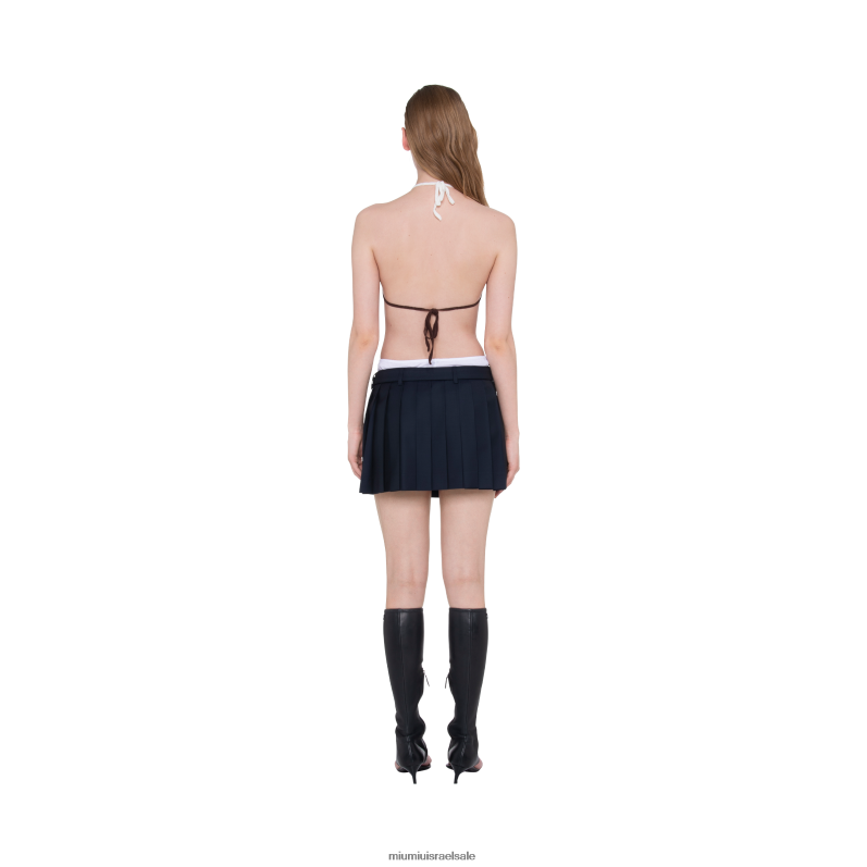 צללית דינמית, עכשווית ורב-תכליתית מאפיינת את חצאית המיני בטאוויה הזו. הקפלים מוסיפים תנועה ומגע רומנטי לבגד. החגורה, בהשראת לבוש שימושי, מעוטרת בלוגו שמשלים את הבגד עם תו ייחודי ואיקוני.
