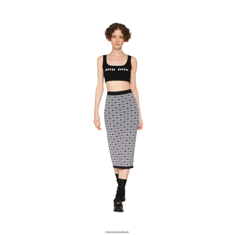 הסגנון האייקוני הוא הגיבור בחצאית ויסקוזה חדשה זו. לוגו הג'קארד מכסה כמעט כולו את הבגד, ומקשר אותו לנשיות חסרת כבוד. רצועת המותניים והשולי הסריג משלימים את החצאית עם ניגודיות מעודנת.