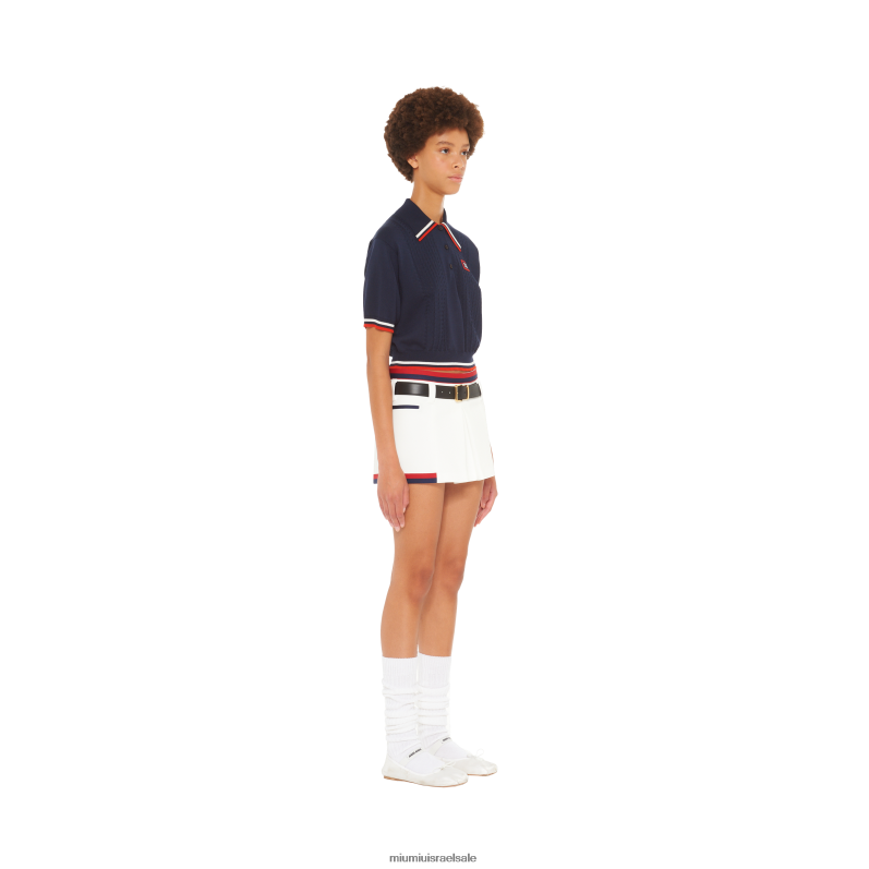 אלגנטיות מחודשת וצלליות עם מצב רוח רטרו מתפרשים מחדש בצורה מודרנית. מעוטרת בפרטים צבעוניים מנוגדים, חצאית המיני ג'רסי מזכירה סגנונות רטרו אך מוצגת במראה עכשווי. הלוגו בולט בחזית, מקשט את הסגנון.