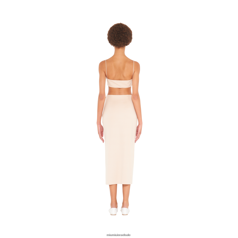 קווים נקיים וסגנון מחמיר מופיעים בחצאית ג'רסי מתיחה זו באורך העגל, המוגדרת על ידי חיתוך ישר בעיפרון. הסגנון מעורר את הרעיון של חייטות בפירוש מחדש עם טוויסט נשי בשילוב של מסורת והתייחסויות לעולם הספורט.