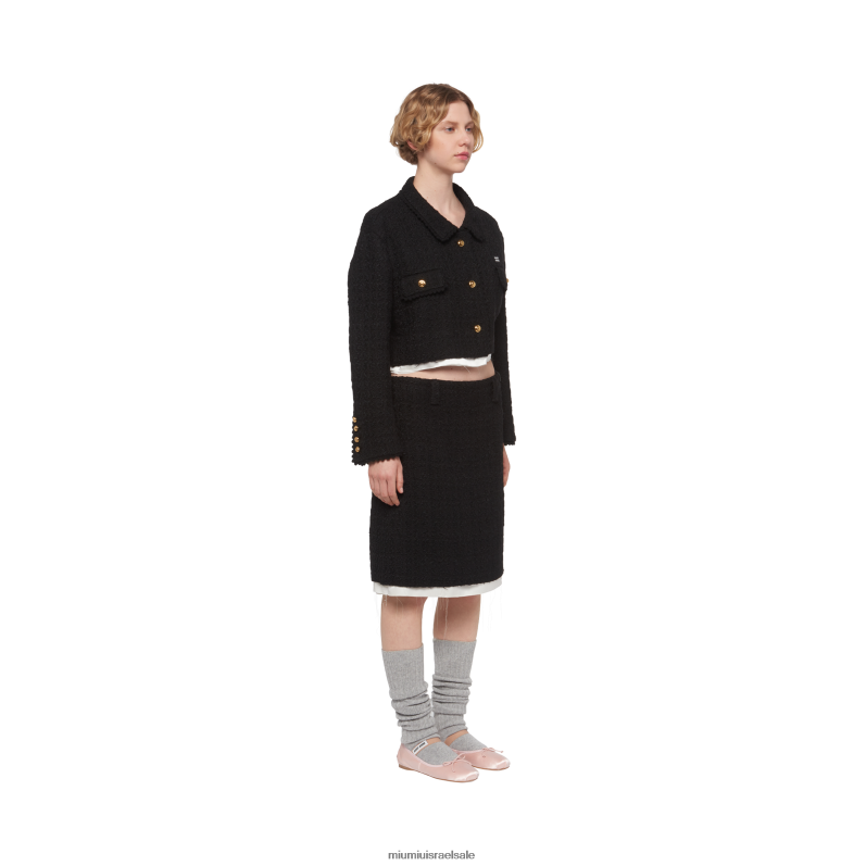 חצאית הטוויד הזו כוללת שילוב של קודים סגנוניים, הממזגים אלגנטיות מרדנית וחייטות מודרנית. תהליך הבנייה נותר חשוף דרך הבטנה בגזרה גולמית, בעוד שלולאות חגורה כפולות במותן מדמיינות מחדש עיצובים קלאסיים.