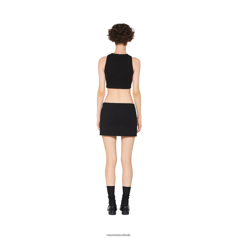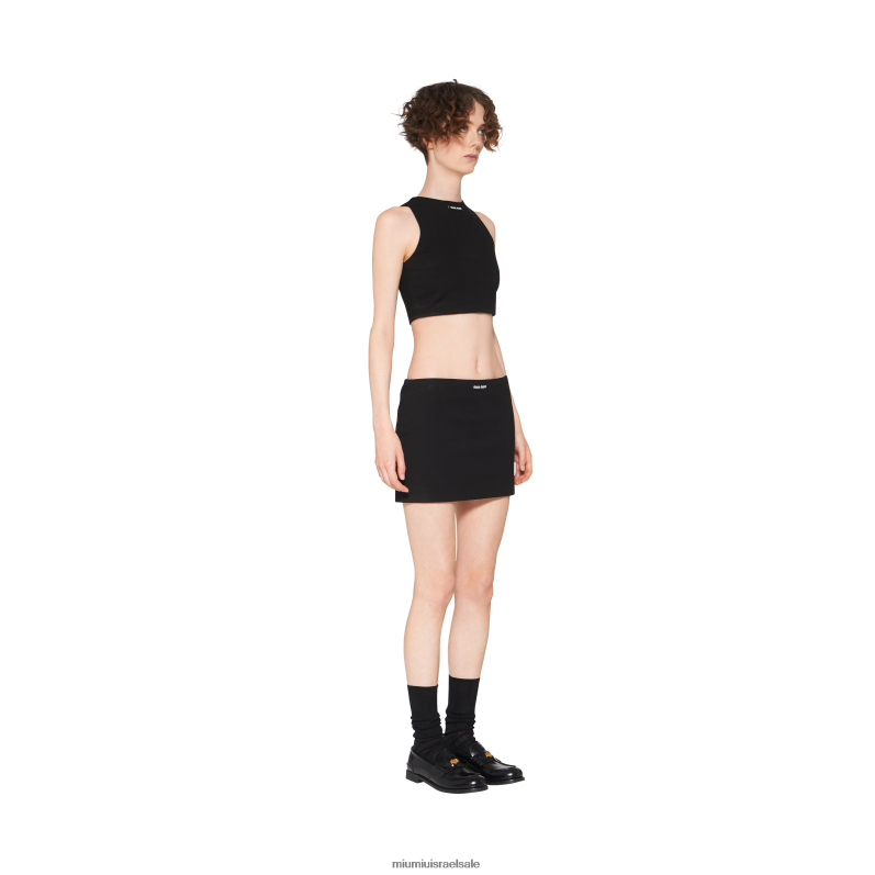 המוגדרים על ידי עיצוב מלוטש וצללית בגזרה דקיקה, חצאית מיני ג'רסי זו מעוטרת בלוגו הסריג miu miu המוחל בחזית.