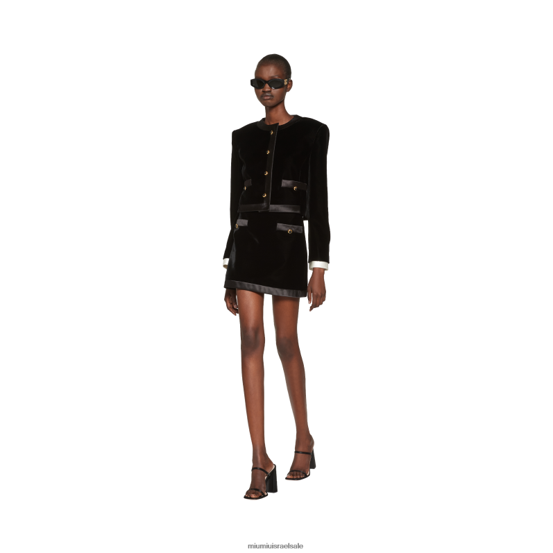 מוארים על ידי ססגוניות הקטיפה, חצאית מיני זו משדרת אלגנטיות. העיצוב בעל הקו הנקי עם סגירה קדמית עם וו ורוכסן עם פרטים בסאטן דוכסית.