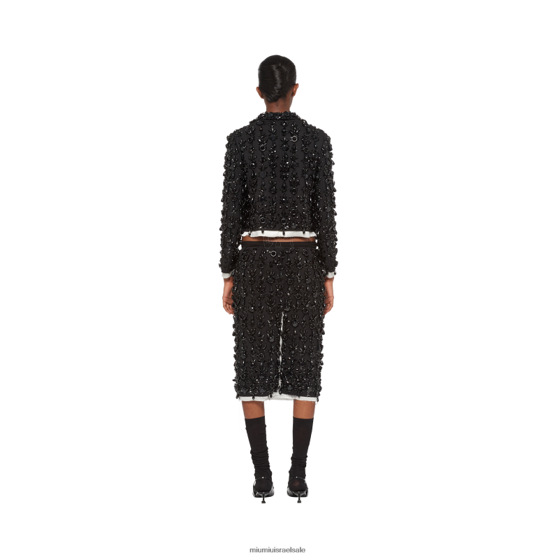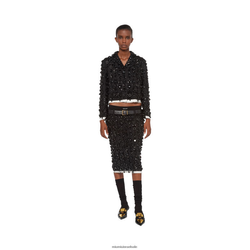 קולקציית אביב קיץ 2022 של miu miu היא תרגיל בהתייחסויות ומחקר של המציאות, תוך שימוש במה שקיים כדי ליצור צלליות חדשות חסרות כבוד באמצעות פרופורציות חדשות ופרטים יקרים. החייטות הקלאסית מתערערת ובגדי נשים קלאסיים מקבלים משמעויות חדשות. עיצוב אירוני, אולטרה-נשי ועיטורי בגדי ערב המהדהדים רקמה מאפיינים את החצאית הזו עם שולי חיתוך גולמי.