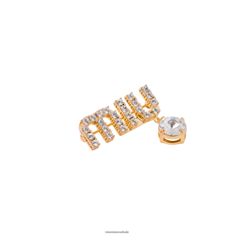 לוגו האותיות האיקוני הוא הגיבור של קולקציית התכשיטים החדשה והיקרה של miu miu ומופיע בדרכים חדשות ושונות. קריסטלים מסנוורים מאירים את הסיכה הזו עם תליון.