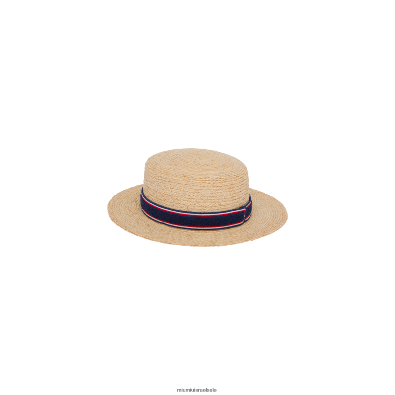 הצעות קיץ וניגודים מעודנים מגדירים את הסגנון של כובע רפיה החדש הזה. לטעם הכפרי של החומר מצטרפת הרצועה הרב-גונית בצבע מנוגד שעליו בולט הלוגו של miu miu בנשיות תוססת ועצבנית.