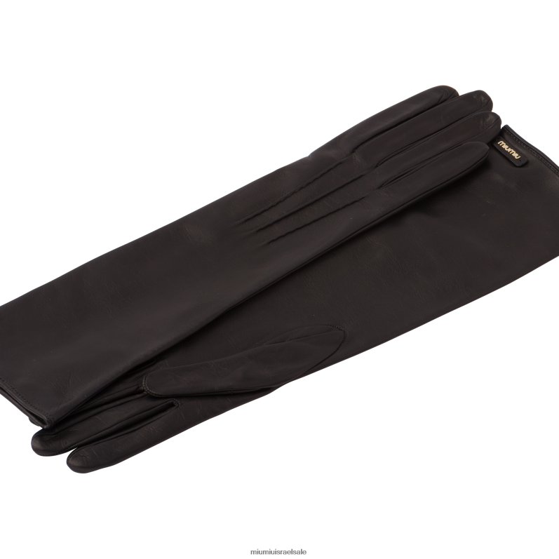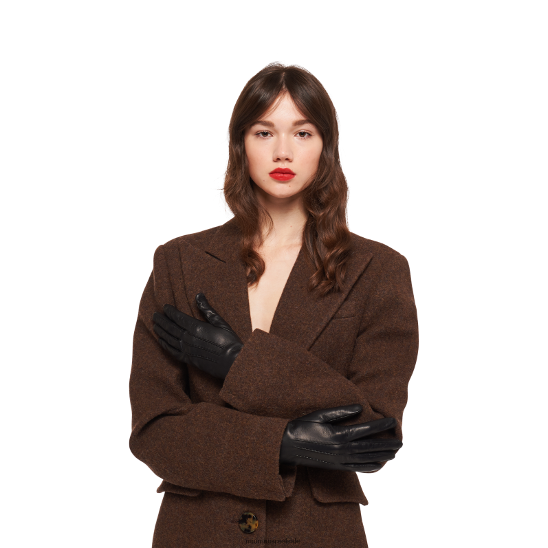 פרט עדין כמו לוגו כיתוב המתכת מקשט את כפפות עור הנאפה הרכות הללו. בטנת משי משלימה את האביזר.