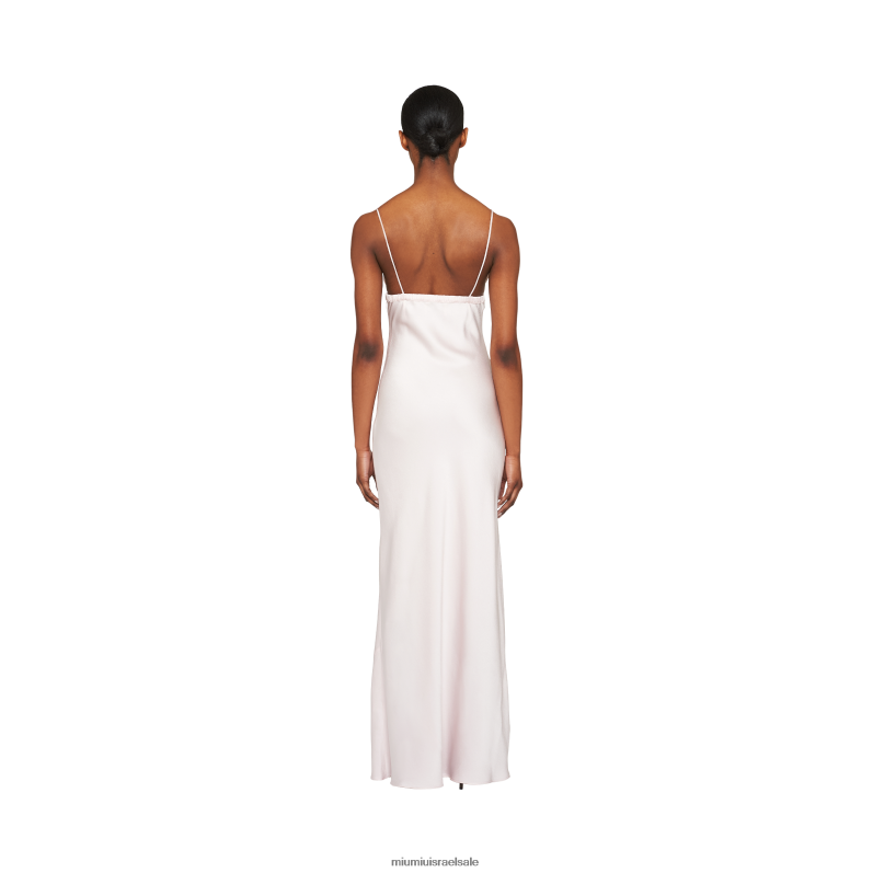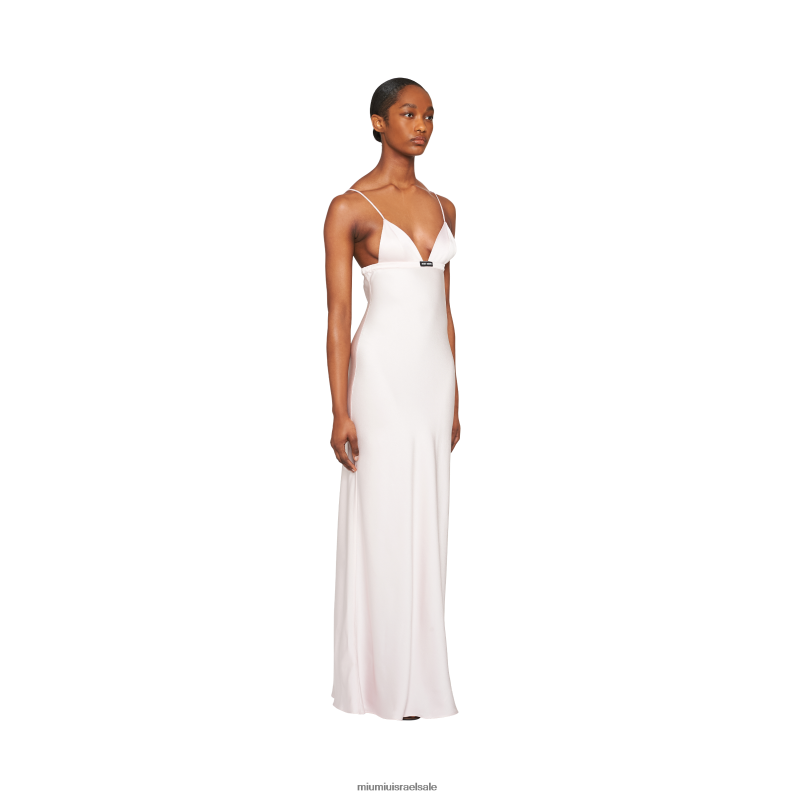 אלגנטיות כריזמטית, מעודנת וסתמית מאפיינת את שמלת הסאטן הארוכה הזו. קו הצוואר הנמוך והשוליים המתרחבים בולטים על רקע הבד החלק והחלק, ויוצרים צללית מתפתלת וחושנית. לוגו הג'קארד משלים את העיצוב עם מגע יחודי.