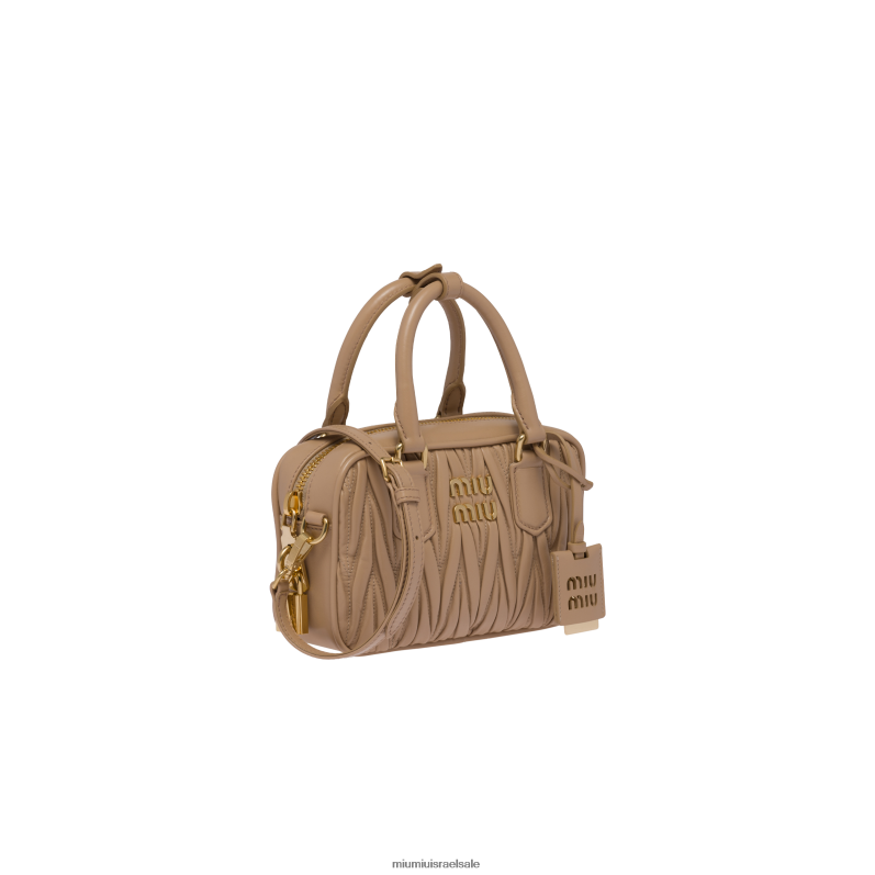 אוסף בז' חול Miu Miu תיק ידית עליונה מעור נאפה מטלסה FNPPL40