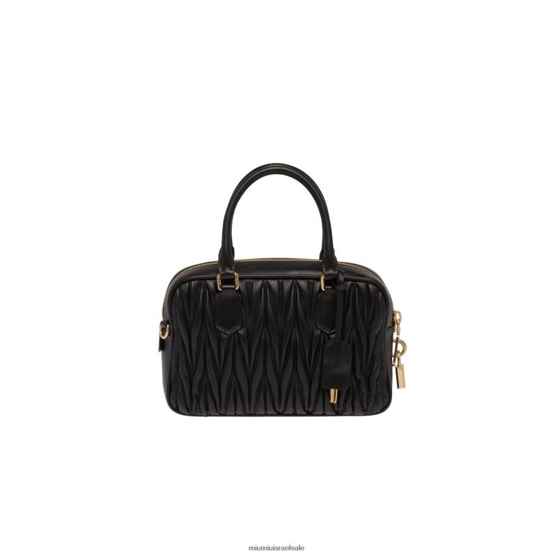 miu miu חוזר על קודים קלאסיים, משחק עם צורות איקוניות ומדמיין מחדש פונקציות. עשוי מעור נאפה מטלסה, סימן היכר של Miu Miu, תיק ידית עליונה זה משתלב יום ולילה, והופך לאביזר רב-תכליתי של מודרניות ואלגנטיות רבה. פרטי זהב מתוחכמים מבהירים את התיק.