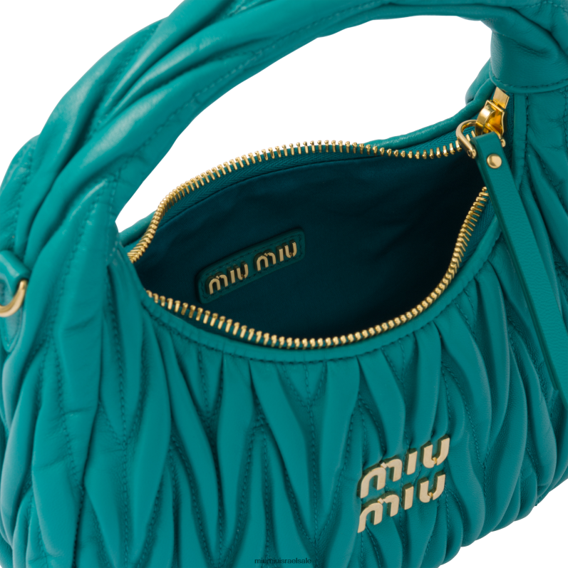 תיק ה-miu wander מקבל פירוש מחדש עונה אחר עונה, והופך לאביזר אייקוני של קולקציות miu miu. התיק עשוי מעור נאפה מטלסה, מאופיין באפקט התלת מימדי המתוחכם שנוצר על ידי הביצוע המעודן. צורת הנווד, הממזגת השראות רטרו ואלגנטיות עכשווית, הופכת למילה נרדפת חדשה לנשיות מודרנית.