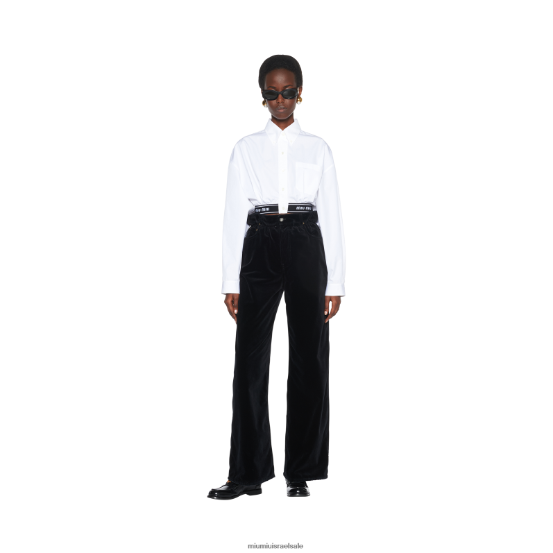 משחק עם קודי לבוש רשמיים, Miu Miu מערבב מטרות שונות, חלומות ומציאות כדי ליצור בגדים עם פיתוי מודרני מתוחכם כמו מכנסי קטיפה ישרים אלה.