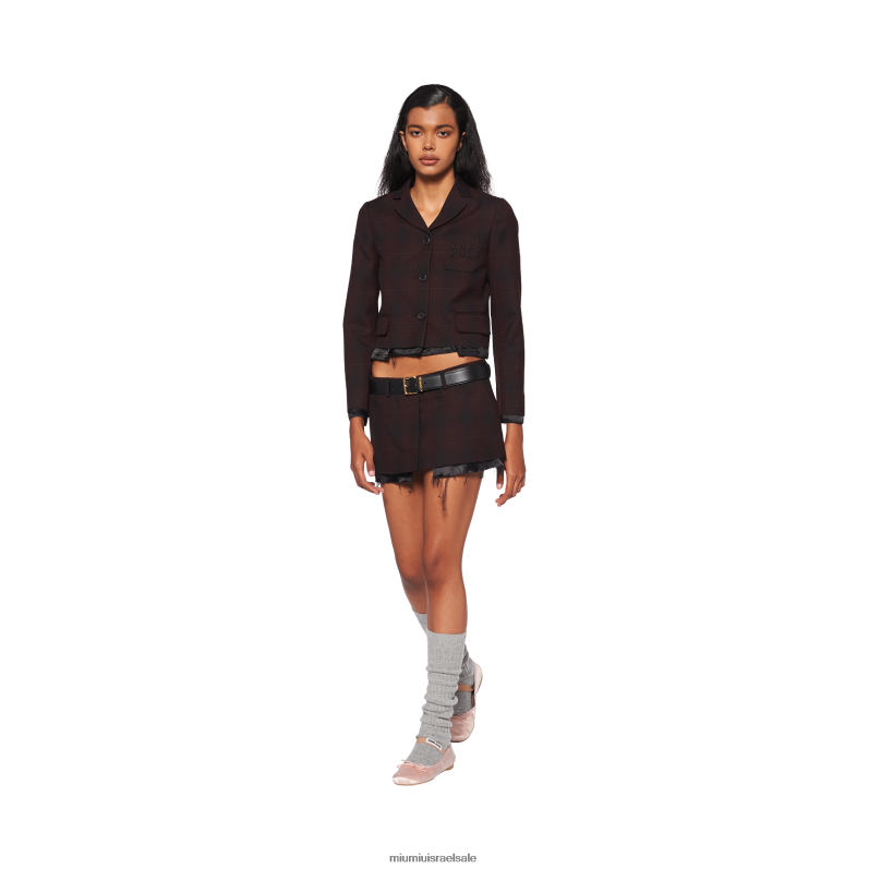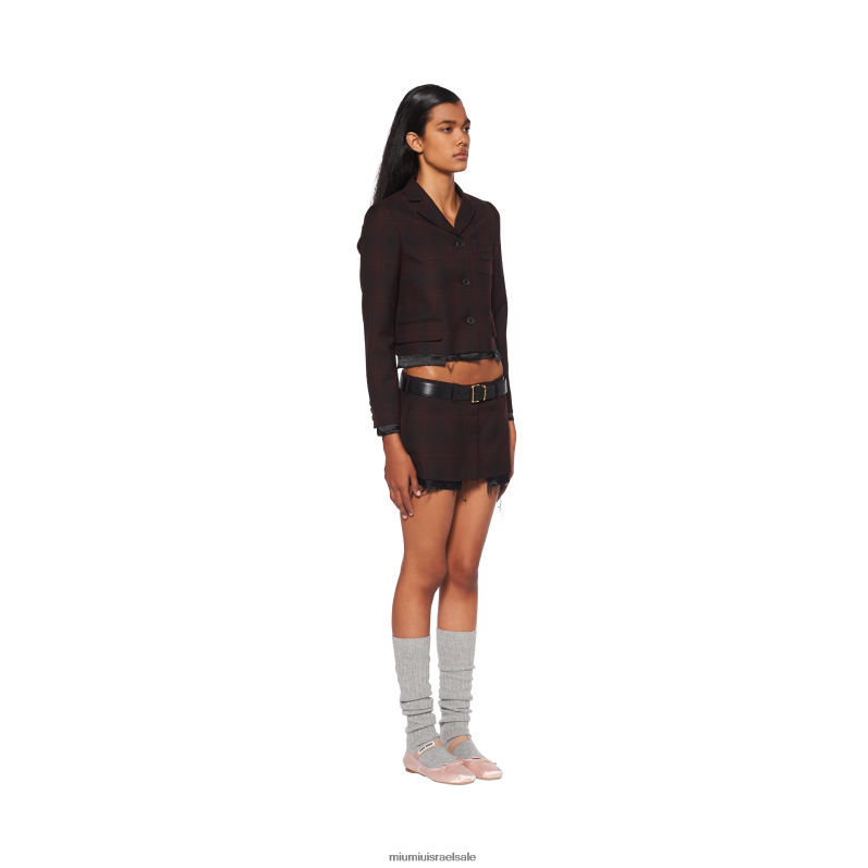 ראשי| מוכן ללבישה| מעילים וג'קטים| מוכן ללבישה בורדו Miu Miu ז'קט משובץ חד חזה FNPPL514
