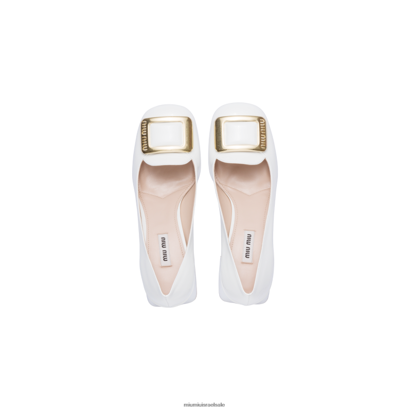 המשאבות המתוחכמות והנשיות הללו מעוטרות בעיטור אבזם מתכת חרוט לוגו גדול שיוצר אפקט יוקרתי ואייקוני. עשויות עור פטנט ועם עקב עבה עבה, הם מעוטרים בתווית לוגו הבד.