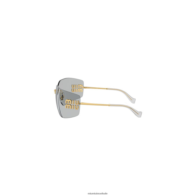 משקפי שמש ממתכת בעיצוב מתוחכם ועכשווי. הסגנון האולטרה-קל ללא שפה מאופיין בעדשות המעוגלות המעוטרות בלוגו האנכי המרשים של miu miu.