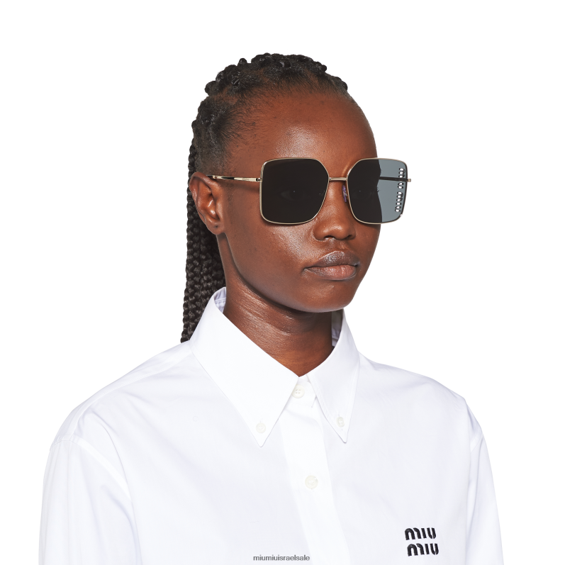 משקפי שמש עם פיתוי זוהר ומתוחכם. המסגרת הגדולה מאופיינת בעדשות מרובעות וחישוקי מתכת והלוגו של miu miu. בחלק מהגרסאות הבלעדיות, הלוגו של בית המגורים חרוט על העדשות, ומוסיף מגע לא שגרתי ומודרני.