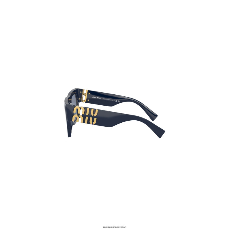 משקפי שמש אצטט עם עיצוב מלבני גדול מימדים ורוח נועזת חסרת כבוד. חזית המסגרת הגדולה מודגשת על ידי הלוגו האנכי החדש של miu miu המשולב בצירים של הרקות השמנמנות.