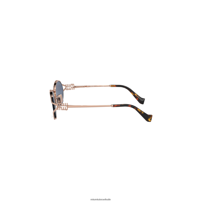 משקפי שמש ממתכת עם פיתוי מתוחכם. המסגרת מודגשת על ידי חישוקי מתכת דקיקים הנפרדים מהעדשות הסגלגלות האופנתיות לפני שנפגשים שוב כדי ליצור את הלוגו האנכי החדש של miu miu המשולב בצירי הרקות הישרים.