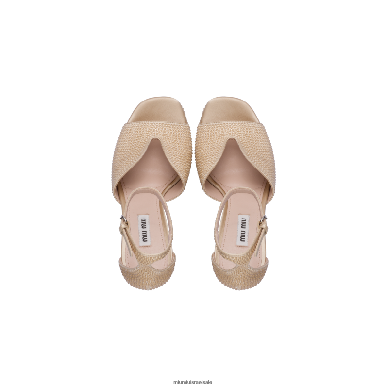 קריסטלים זוהרים מפארים את העיצוב האולטרה-נשי של סנדלי הסאטן האלה. הסנדל עם רצועת הקרסול בעל עקב גבוה וקווים מתפתלים.
