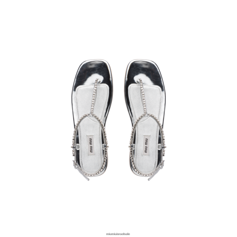 העיצוב המלוטש של חוטיני הבד הטכני המתכתי הללו מואר על ידי הקריסטלים בחלק העליון. סוליית העור מעוטרת בתווית לוגו הבד.
