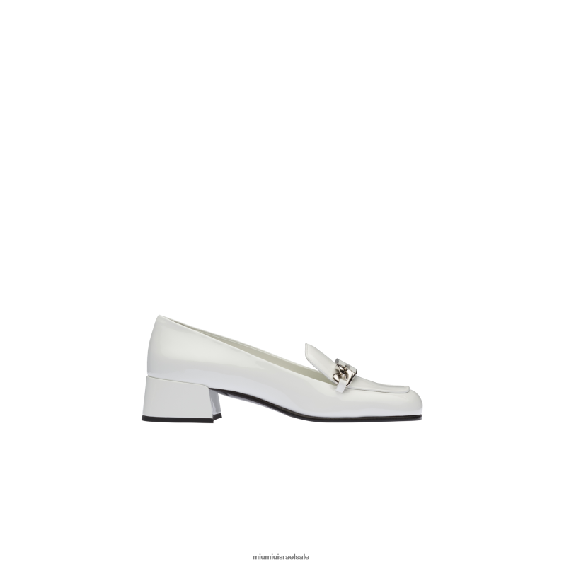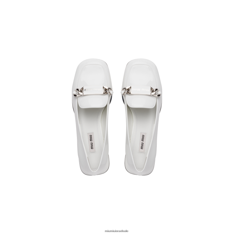 העור המבריק יוצר משחק של השתקפויות ומאפיין את הלופרים הללו בקולקציית miu miu החדשה. הלוגו מקשט את עיטור המתכת בחלק העליון, ומוסיף הערה עכשווית לנעל.