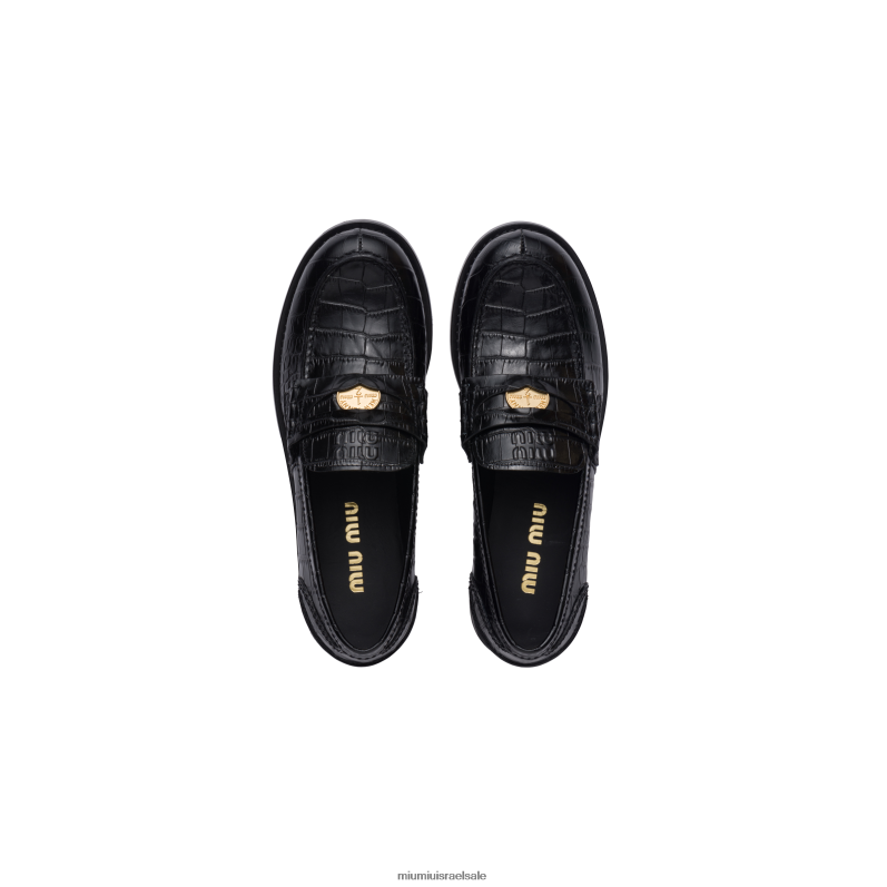 ראשי| נעליים| נעלי לוז ושרוכים| נעליים שָׁחוֹר Miu Miu מכנסי עור בהדפס קרוקו FNPPL308