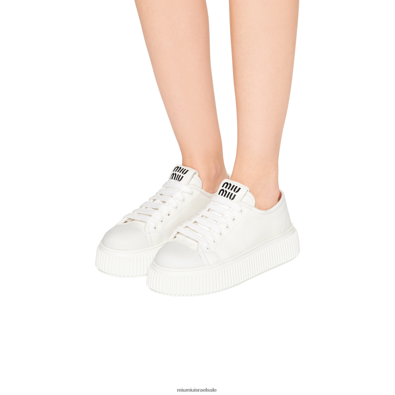 ג'ינס נצחי מושפע מסגנון Miu Miu שובה לב כדי ליצור את הסניקרס החדשות האלה. הלוגו המודפס על המסך על הלשון מוסיף קונטרסט מעודן ומשפר את הנעל עם מגע איקוני. סוליית הפלטפורמה עוזרת להגדיר את הסגנון הנועז והעכשווי הייחודי.