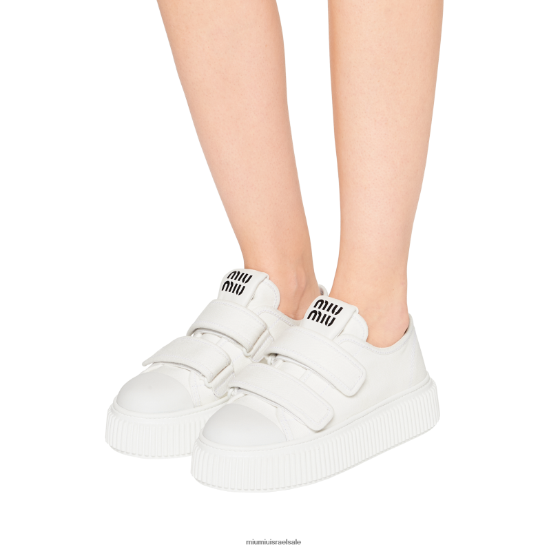 דינמיים, צדדיים וקז'ואלים: הסניקרס החדשות הללו משלבות סגנון Miu Miu נועז עם ג'ינס נצחי. סגירת רצועת הקרס והלוגו המנוגד על הלשון משלימים את עיצוב הנעל עם פרטים מעודנים.