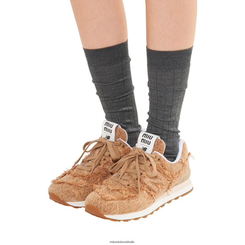 הסגנון האקסקלוסיבי הזה נולד משיתוף הפעולה בין miu miu ל-new balance. עיצוב היברידי זה מפרש מחדש לחלוטין את הנעל הספורטיבית בגרסת ג'ינס משויש עם קצוות שוליים בחיתוך גולמי, שהם חלק מתהליך בנייה שנותר חשוף כדי להדגיש את הספונטניות של פעולות אלו.