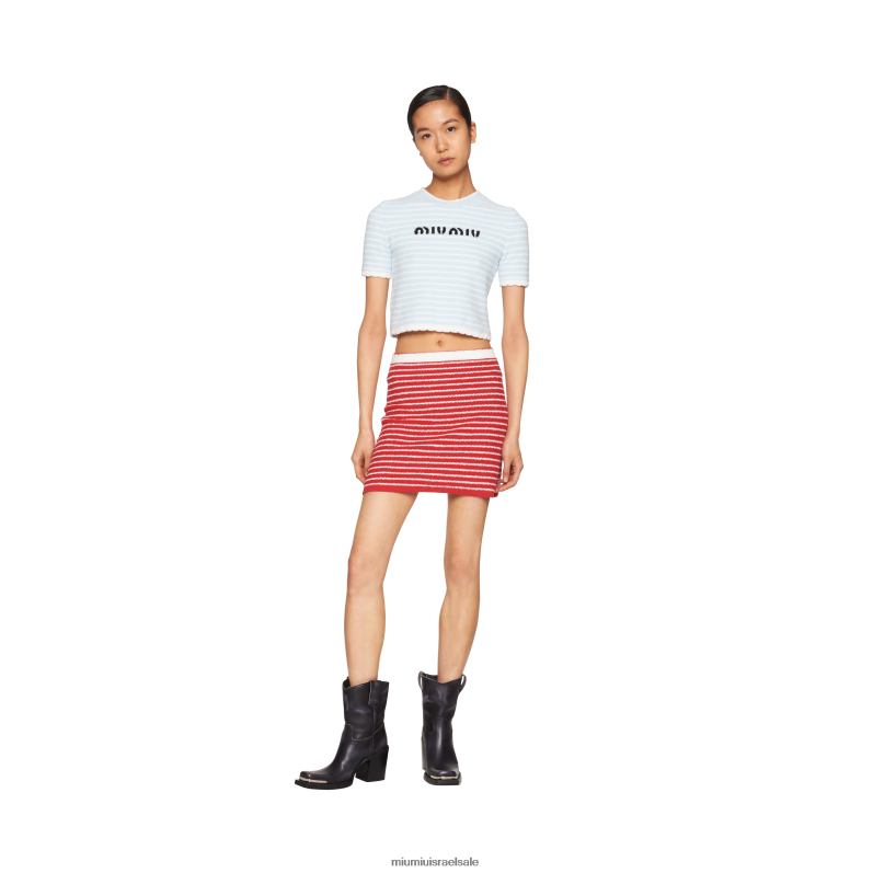 הסגנון המושך את העין של miu miu בא לידי ביטוי בסוודר הכותנה החדש הזה. מוטיב הפס מעניק לבגד סגנון עצבני ותוסס בעוד הלוגו של אינטארסיה משלים את העיצוב עם הערה ייחודית.