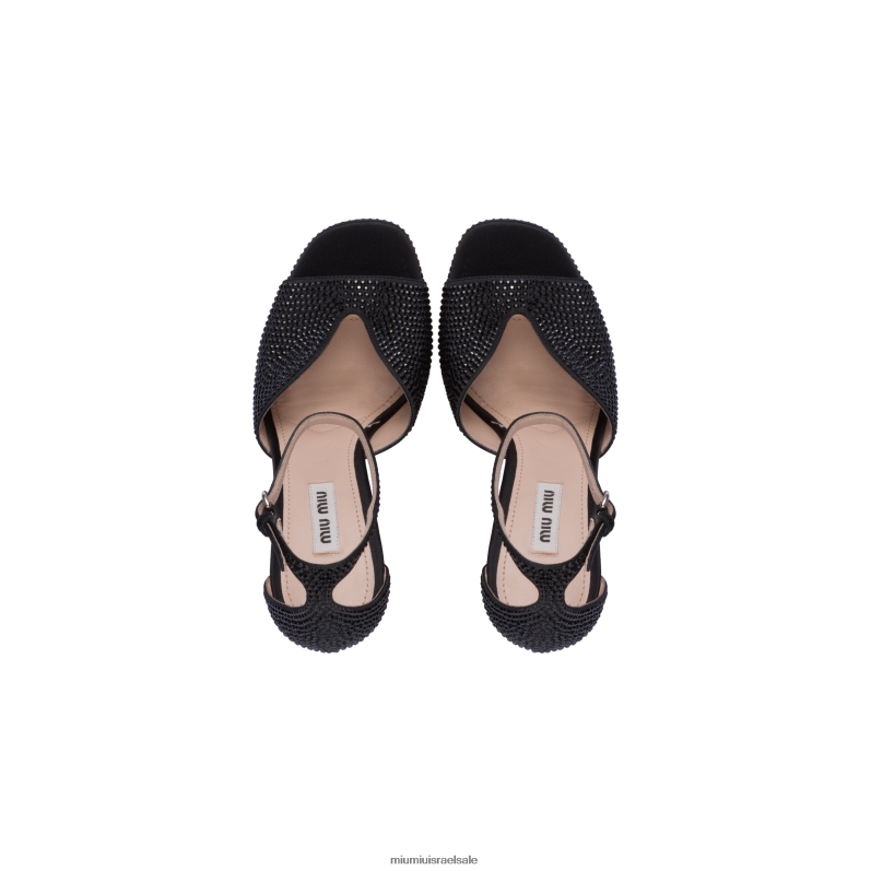 קריסטלים זוהרים מפארים את העיצוב האולטרה-נשי של סנדלי הסאטן האלה. הסנדל עם רצועת הקרסול בעל עקב גבוה וקווים מתפתלים.