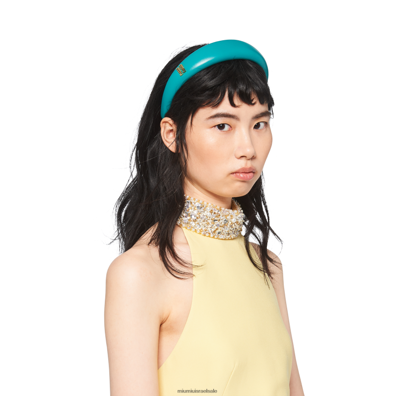 אביזרים כחול טווס Miu Miu רצועת ראש מעור נאפה FNPPL1145