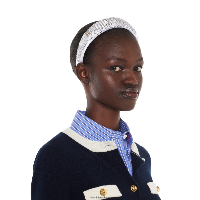 ראשי| אביזרים| סרטי ראש ושיער| אביזרים לבן Miu Miu סרט סאטן עם קריסטלים FNPPL1155