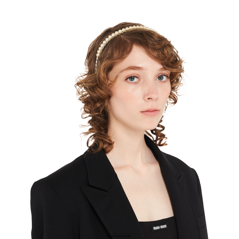 אביזרים קרם Miu Miu סרט מתכת עם פנינים וקריסטלים FNPPL1174