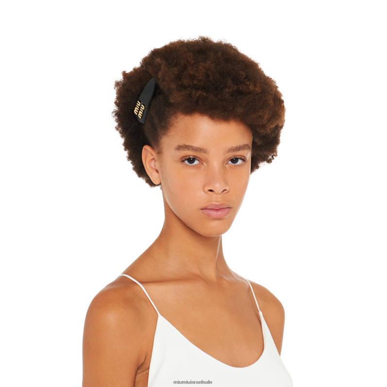 הלוגו האייקוני של miu miu בולט על קליפס שיער זה מעור פטנט.
