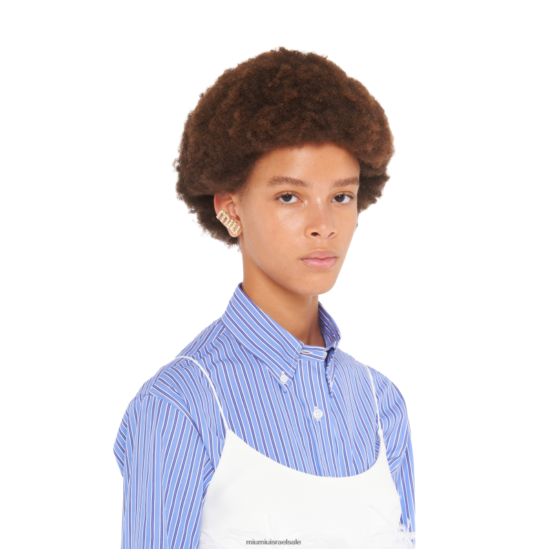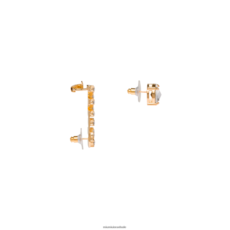 לוגו האותיות האיקוני הוא הגיבור של קולקציית התכשיטים החדשה והיקרה של miu miu ומופיע בדרכים חדשות ושונות. גבישים מסנוורים מאירים את העגילים הללו בעיצוב א-סימטרי.