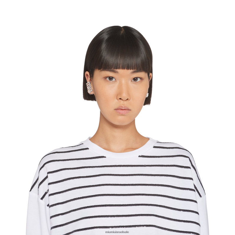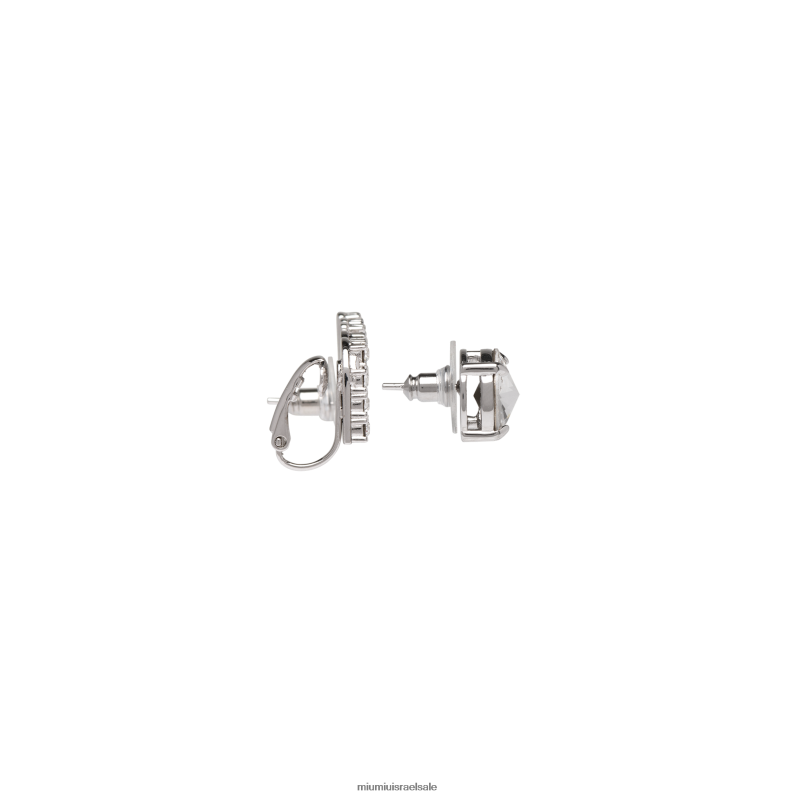 לוגו האותיות האיקוני הוא הגיבור של קולקציית התכשיטים החדשה והיקרה של miu miu ומופיע בדרכים חדשות ושונות. גבישים מסנוורים מאירים את העגילים הללו בעיצוב א-סימטרי.