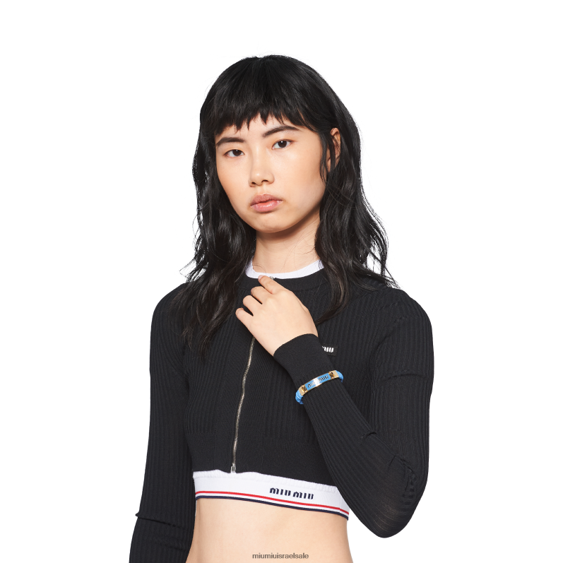 תכשיטים כחול בהיר Miu Miu עור נאפה וצמיד מתכת עם לוגו FNPPL1350