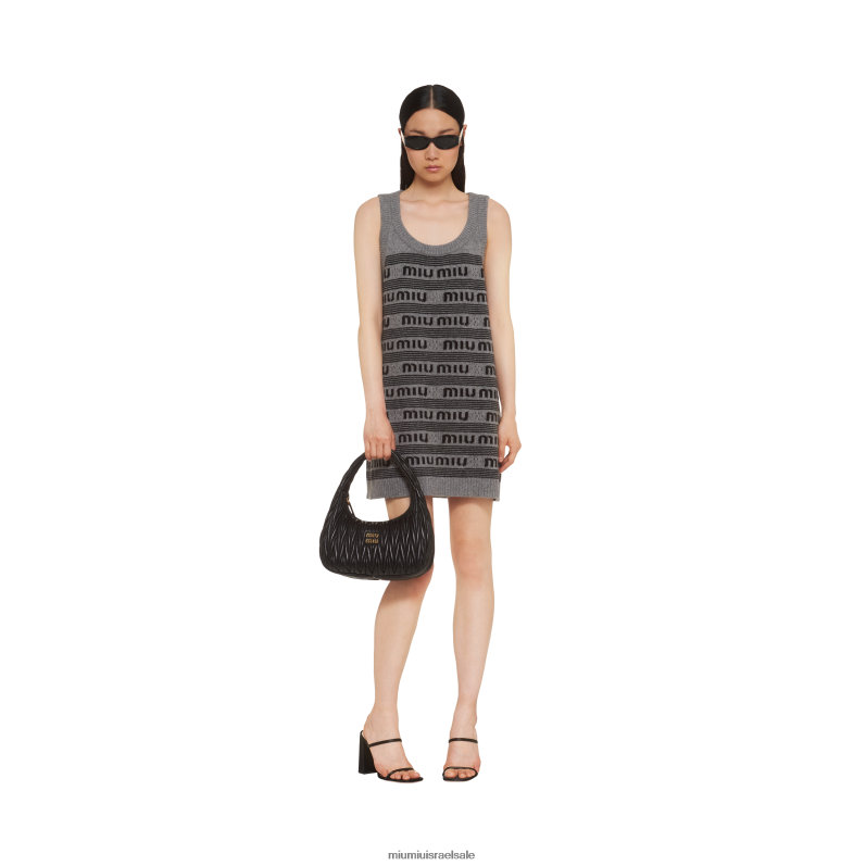 הלוגו האייקוני של miu miu הומצא מחדש כסריג אינטארסיה מעודן לשמלה זו בקשמיר יוקרתי. הקווים המינימליסטיים שלו מביאים את המוטיב הדו-גוני בעיצוב הרטרו המקסים הזה.